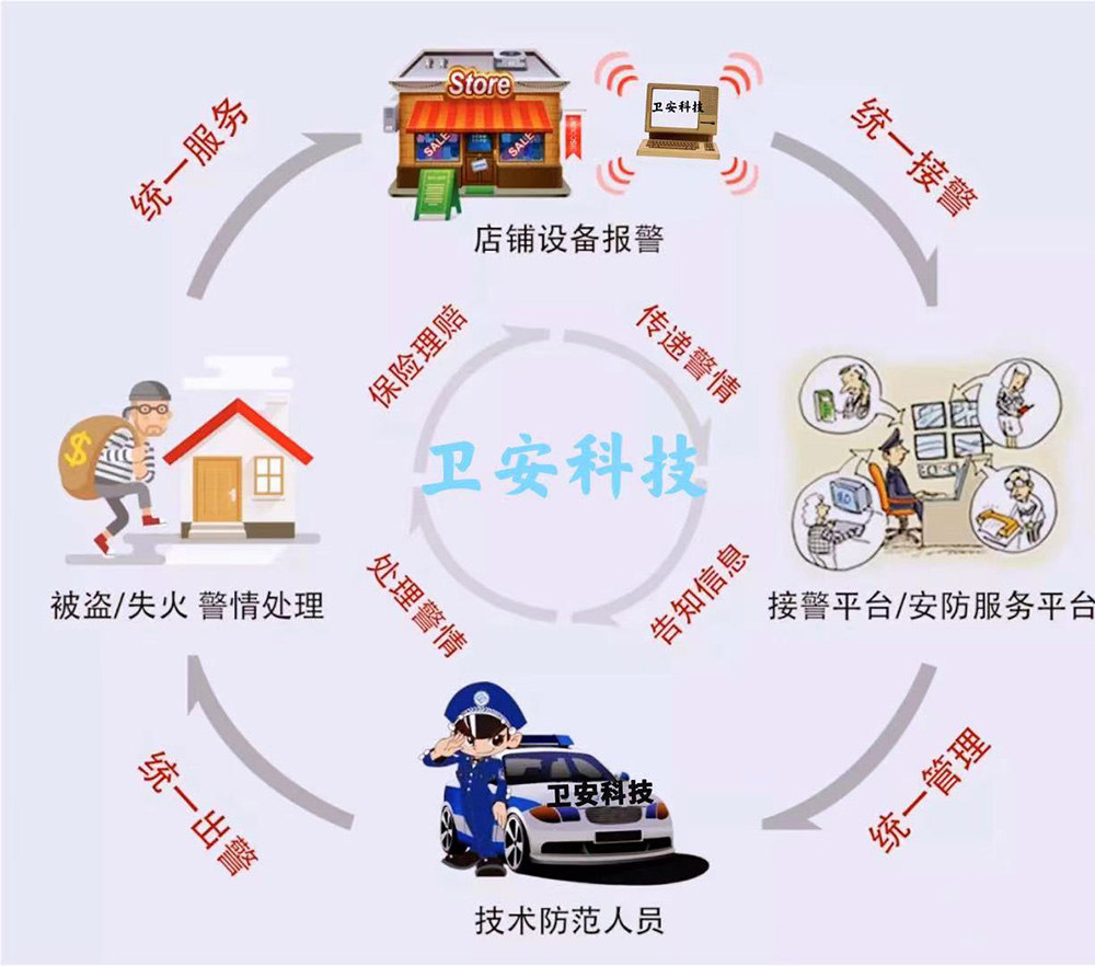 聯網報警系統是指運營商在自己的監(jiān)控室搭建一套報警管理平臺,給需要安裝防盜報警系統的商戶裝上聯網報警器和探測設備,通過聯網報警軟件將這些分散的報警器探測到的警情通過各種傳輸方式傳到管理平臺,統一由中心平臺來處理警情,并由運營商運作系統對警情進行即時的處理,以至于各大商鋪免受損失。